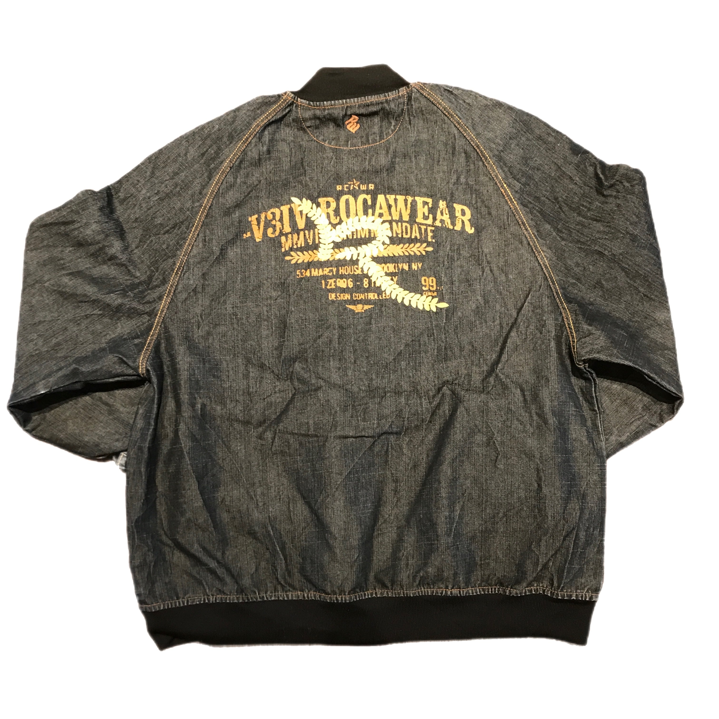 ROCA WEARのデニムジャケットです。スタジアムジャケット風のデザインで薄手の生地が重ね着をお楽しみいただけるアイテム。