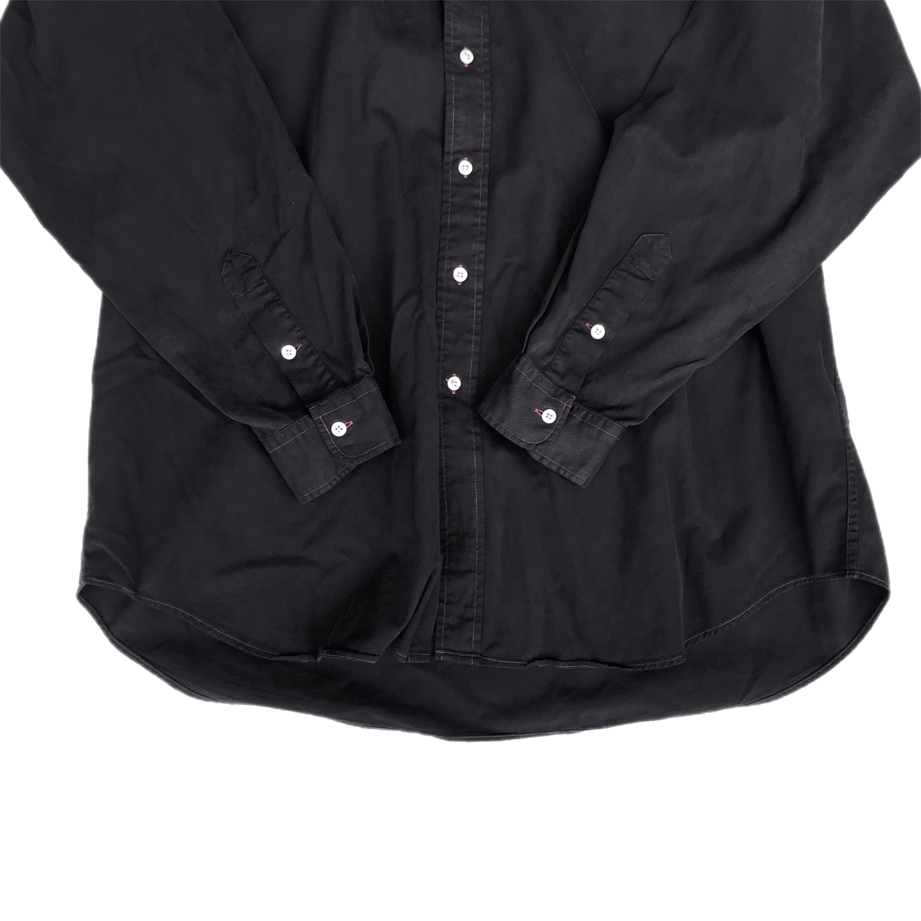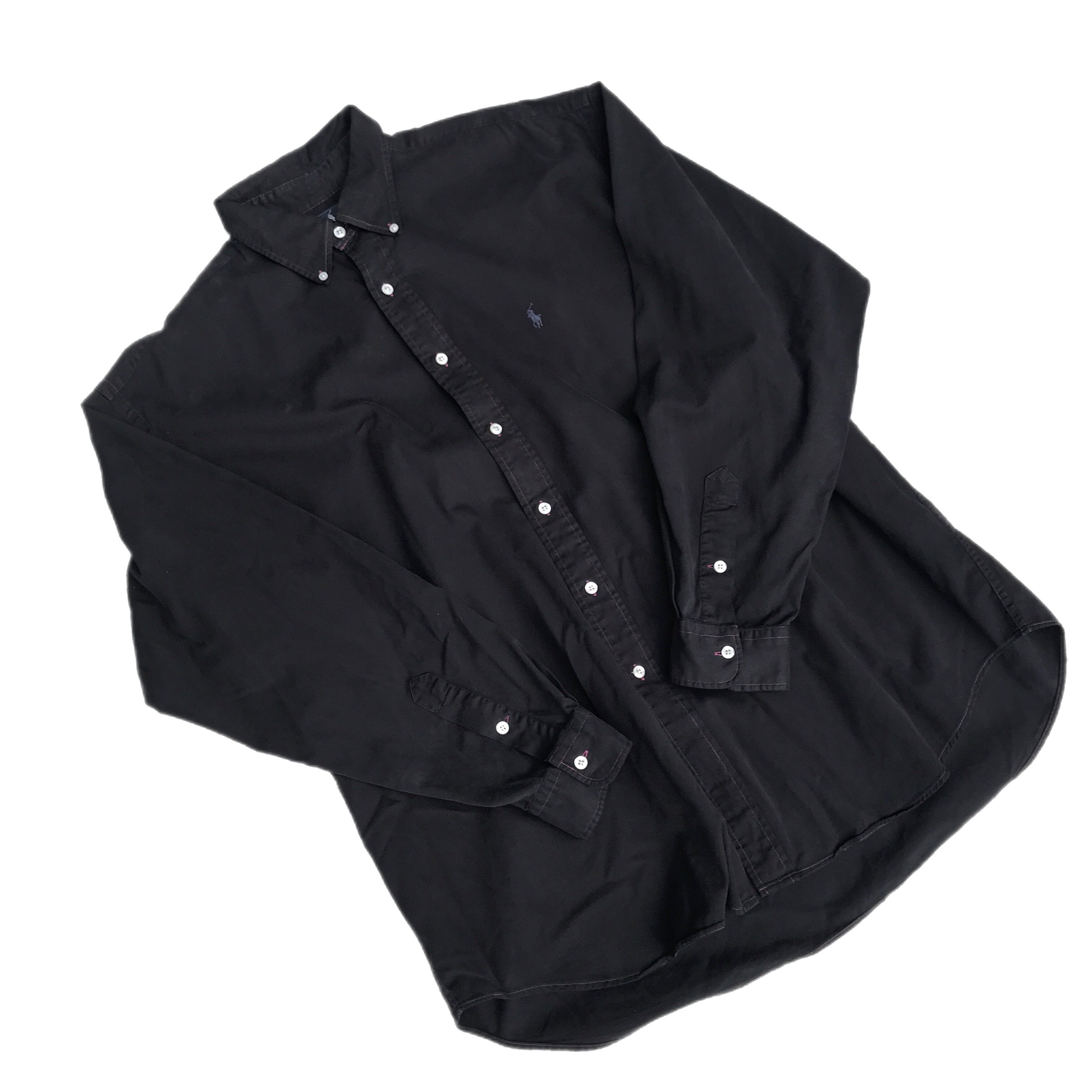 ・80s〜90s頃にリリースされたビッグシルエットのBLAIRE。それを贅沢にも黒に染め上げた一品。紫色のステッチが良きアクセントになっている唯一無二のボタンダウンシャツです。コットン100%