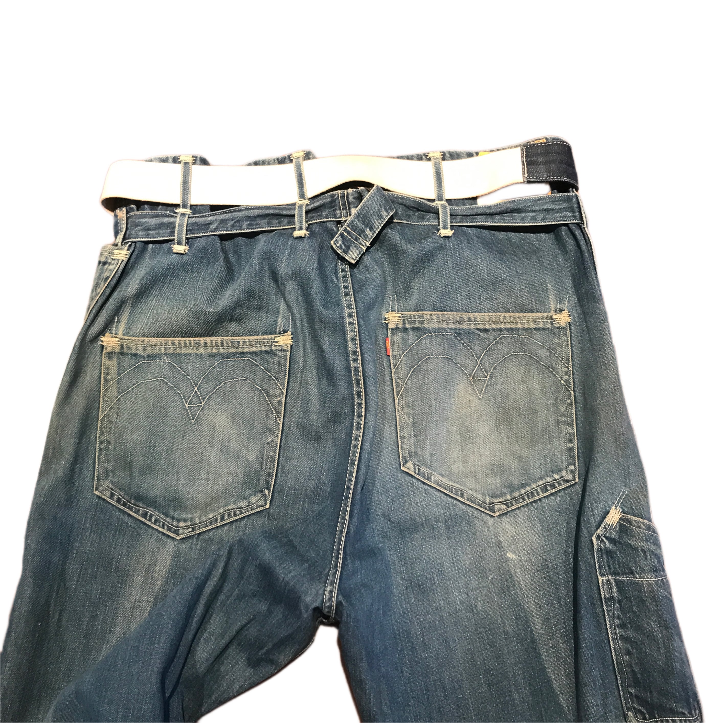 ペインターツナギを半分にカットしカスタマイズされたモデルを表現した、股上が深くオーバーサイズされたスーパールーズシルエット。