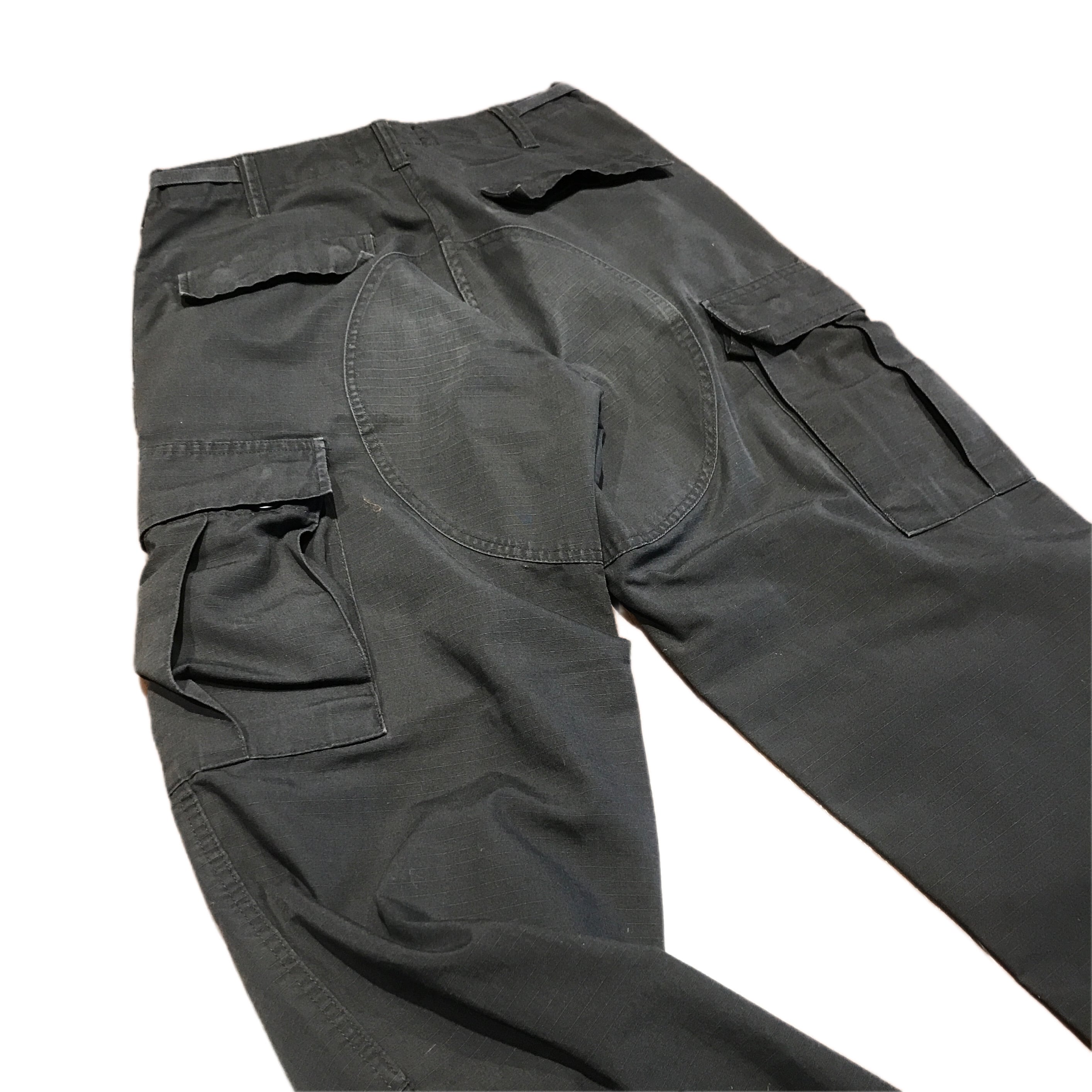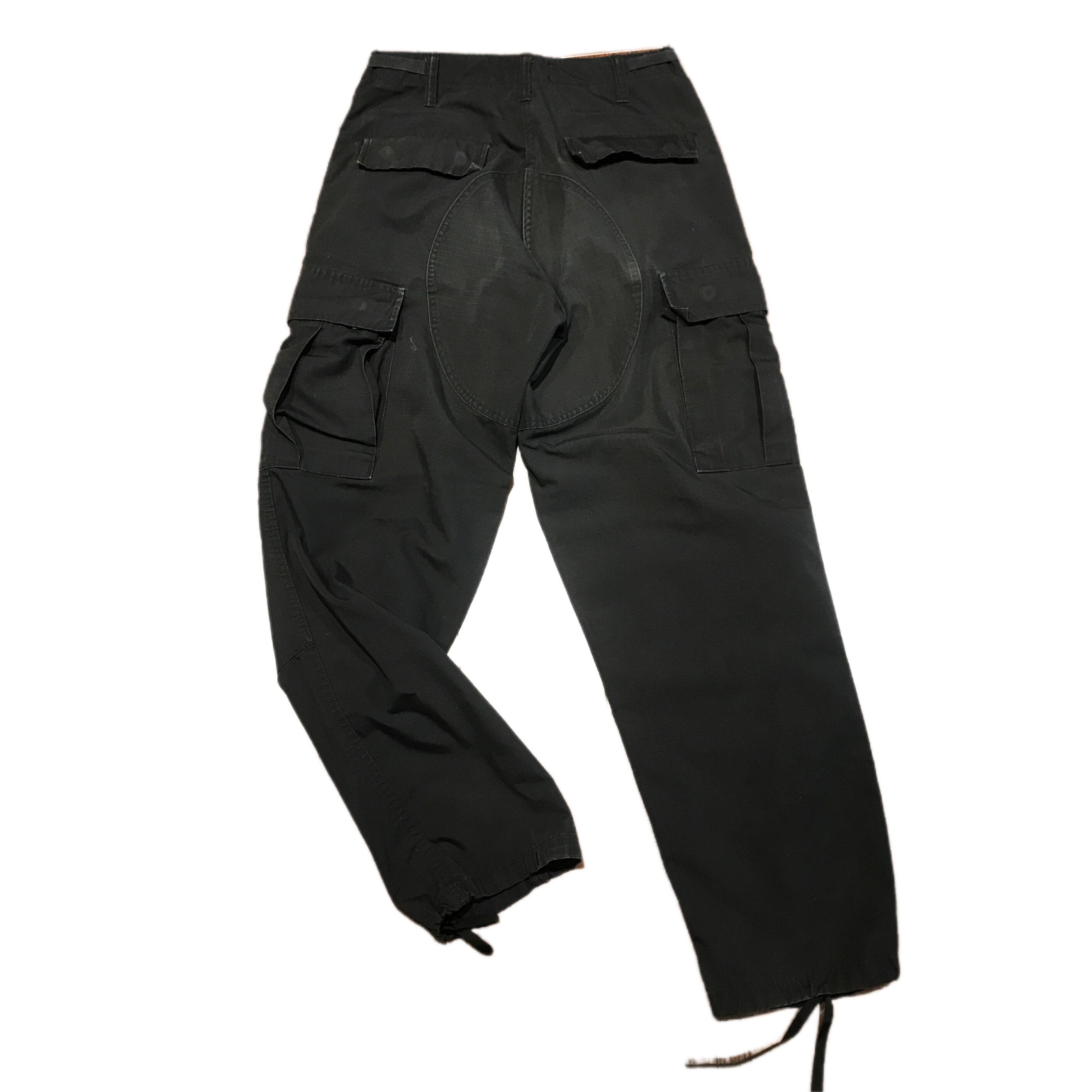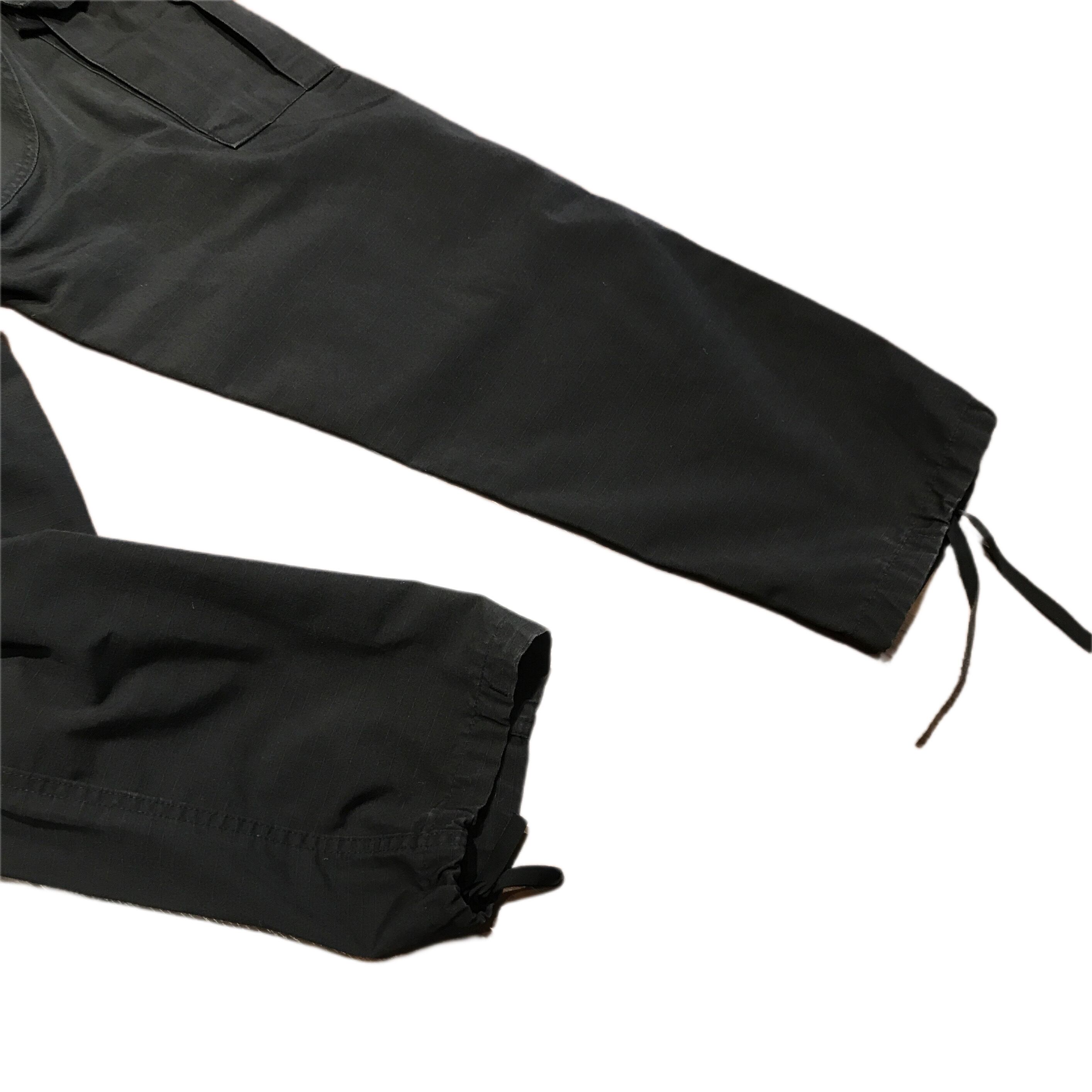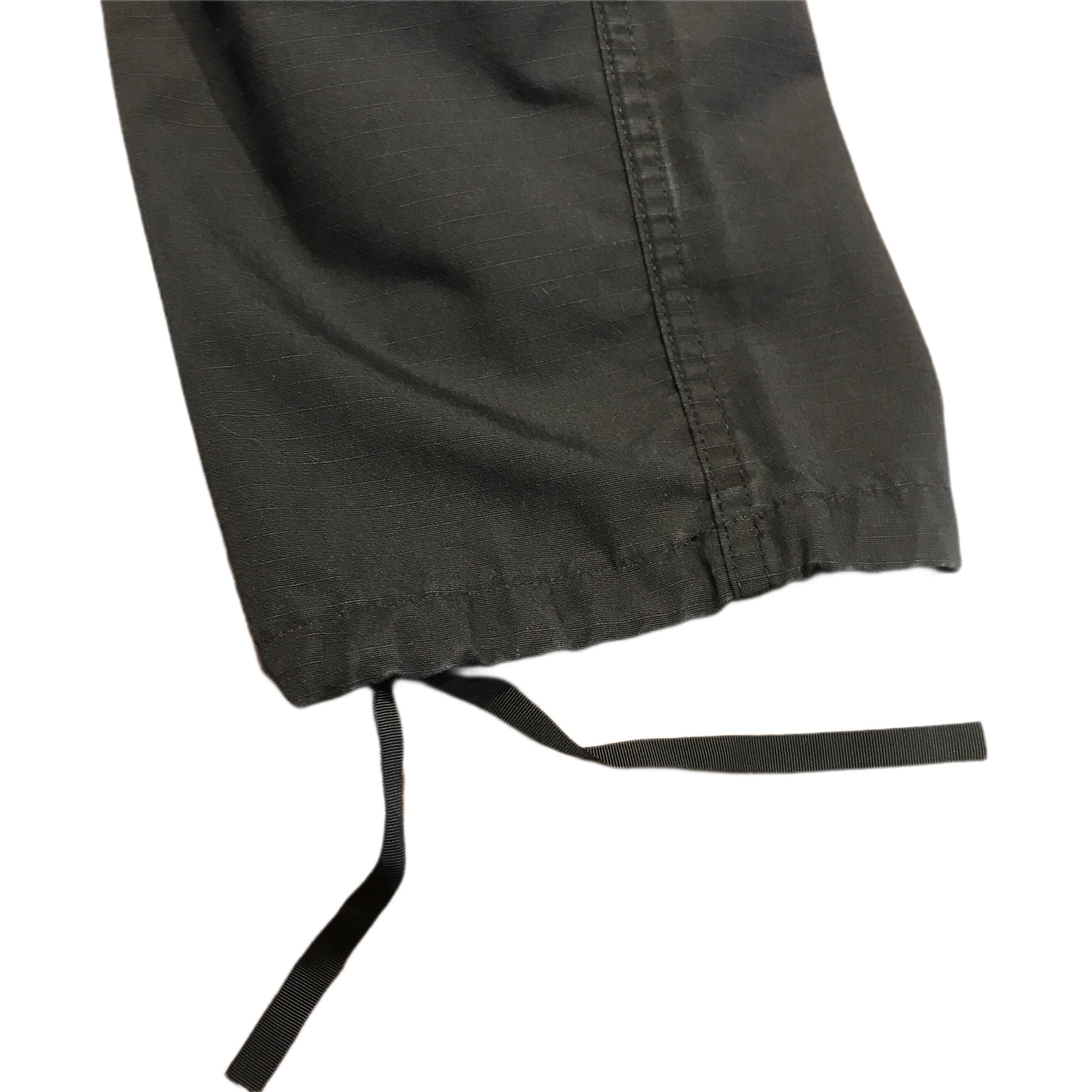 両サイドに大きめカーゴポケット搭載、ウエストはサイドアジャスターによる調整、裾はドローコードで縛って使えるM65型の定番のディテールです